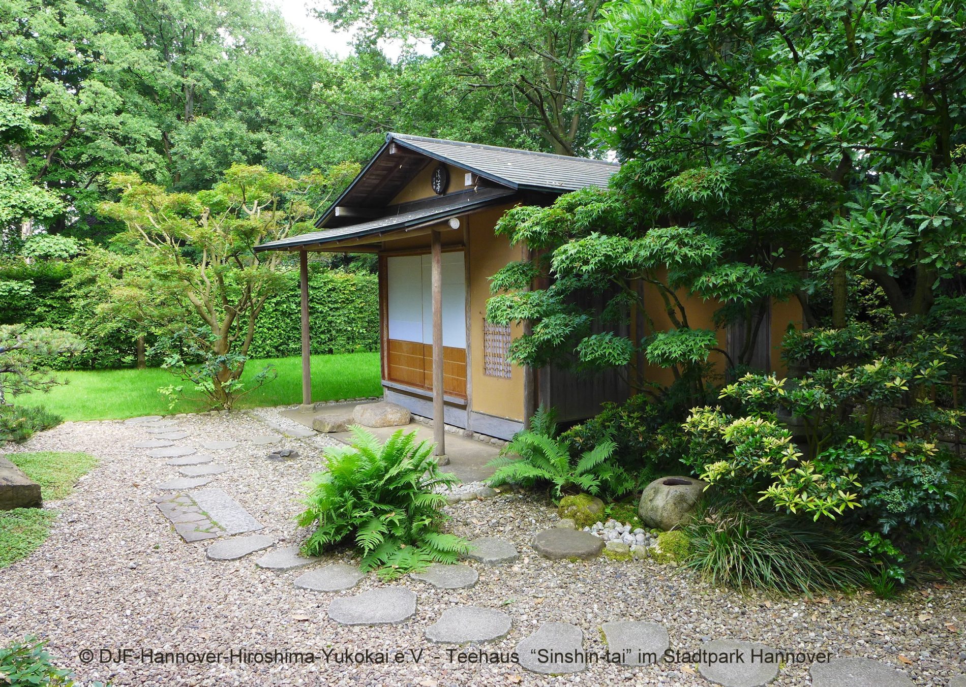 Das Teehaus Senshin-tei im Stadtpark Hannover ist ein Geschenk der Partnerstadt Hiroshima und zugleich ein sichtbarer Ausdruck der freundschaftlichen Beziehungen beider Städte. Seinen Namen („Pavillon der Reinigung des Geistes“) hat das Teehaus von Ueda Sôgen, dem vorletzten Großmeister der in Hiroshima ansässigen Ueda Sôko Teeschule erhalten. Die Gestaltung des Teegartens geht auf einen Entwurf des gegenwärtigen Großmeisters, Ueda Sôkei zurück. Den Stil der Ueda Sôko Schule im Teehaus Senshin-tei zu praktizieren ist für uns ein wichtiger kultureller Beitrag im Sinne der Städtepartnerschaft. Deshalb haben sich im September 2006 diejenigen Mitglieder des Freundschaftskreises, die zugleich Schüler der Ueda Sôko Schule sind, zu einer eigenen Gruppe zusammengeschlossen.